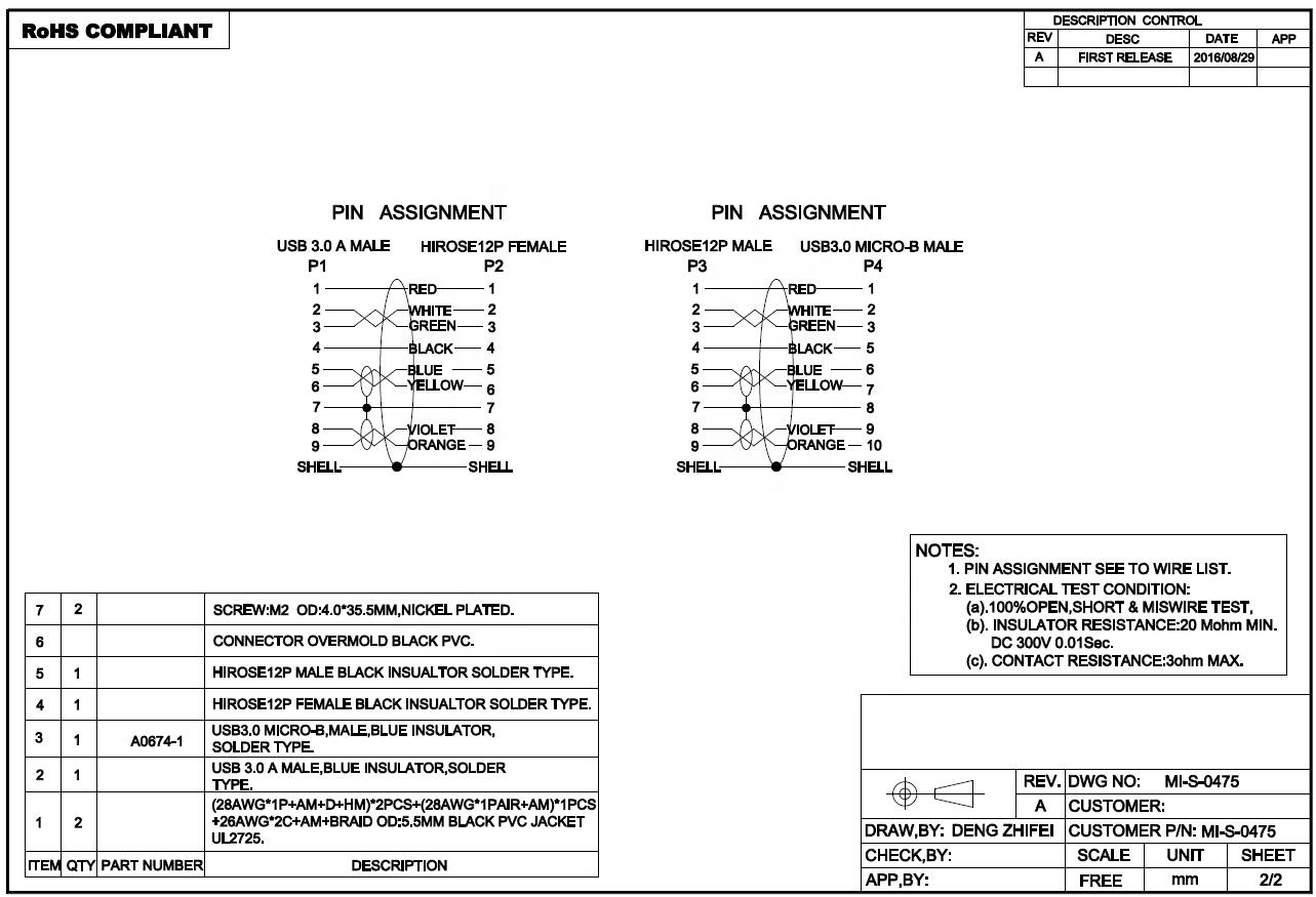 Please note that there are two cables couple, the hirose 12p male to female connector can be connected together.